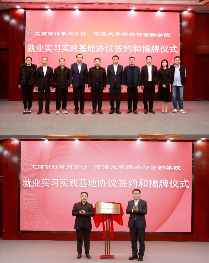 中国工商银行常州分行党委书记、行长张华军,党委委员、副行长吴刚及分行相关部门负责人出席本次活动。校企双方就产学研合作、金融人才培养、学生就业实习实践等方面进行了详细深入的交流,并举行优质就业实习实践基地协议签约揭牌仪式。