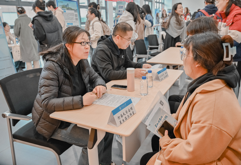 招聘会现场,用人单位精心布置展位,利用宣传海报、招聘资料等吸引毕业生前往应聘。由于前期宣传和组织到位,学院众多毕业生和实习生带着个人求职简历等应聘资料到现场应聘,结合用人单位需求筛选适合自己的工作岗位。低年级学生也被热烈的现场气氛所吸引,前往招聘会现场观摩。招聘会现场人潮涌动,秩序井然,用人单位热情相邀,毕业生积极主动咨询应聘。