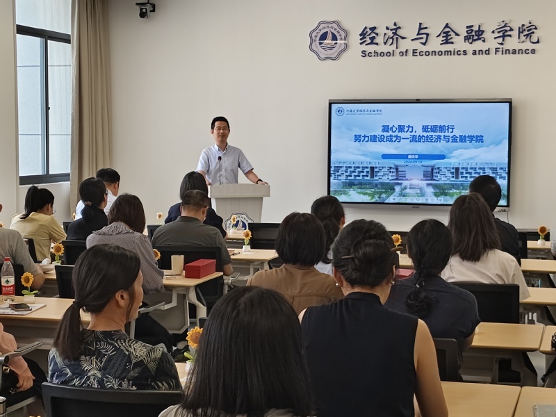 为深入学习贯彻党的二十届三中全会精神,贯彻学校2024年暑期工作研讨会相关要求,进一步推动学校第十四次党代会精神落地生根, 9月10日,经济与金融学院在常州校区33号楼304会议室召开全体教师大会,学院班子成员在会上通报了学院上半年各项工作情况,部署了下半年工作重点。学院全体教师参加了本次会议。