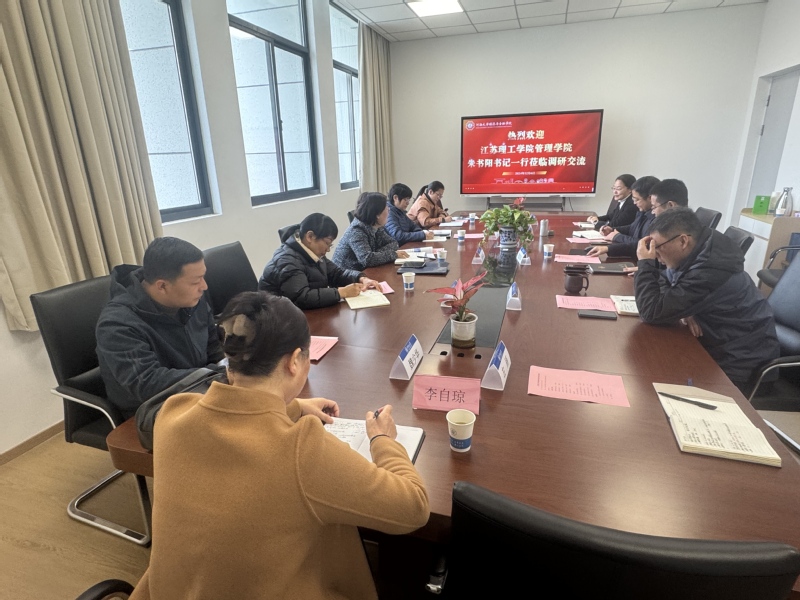 12月6日,江苏理工学院管理学院党委书记朱书阳一行来5g影院 进行工作调研和交流,调研交流会由5g影院 院长庞庆华主持。