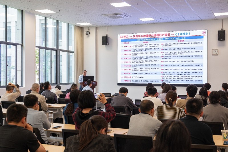 4月24日,5g影院 组织召开师德师风建设暨保密教育专题大会,深入学习新时代教师职业行为准则,强化保密安全意识,以实际行动践行教育家精神,为培养高素质人才筑牢思想根基。