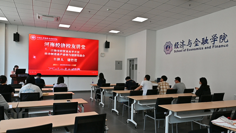 5月22日,5g影院 2013届国际经济与贸易专业校友、浙江工商大学经济学院副院长诸竹君教授受邀重返母校,在33号楼102学术报告厅作题为《以数字经贸高水平开放推动制造业产业链和创新链融合》的专题讲座。经济与金融学副院长李祎雯、学院青年教师、研究生参加了本次讲座,讲座由学院办公室主任左丽主持。