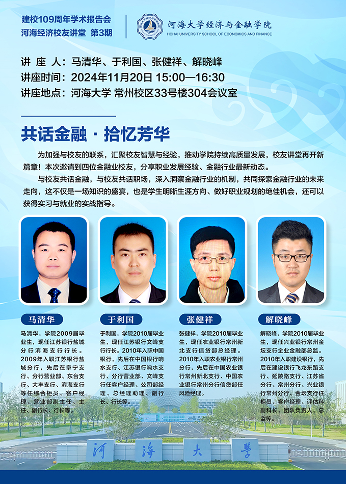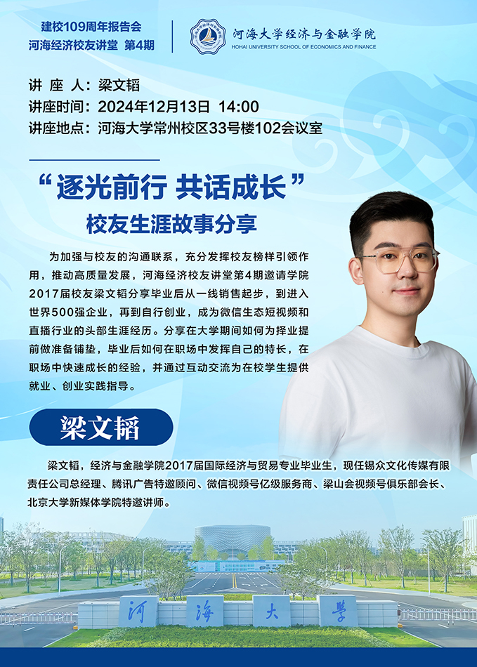 河海经济校友讲堂 第4期|"逐光前行 共话成长”校友生涯故事分享